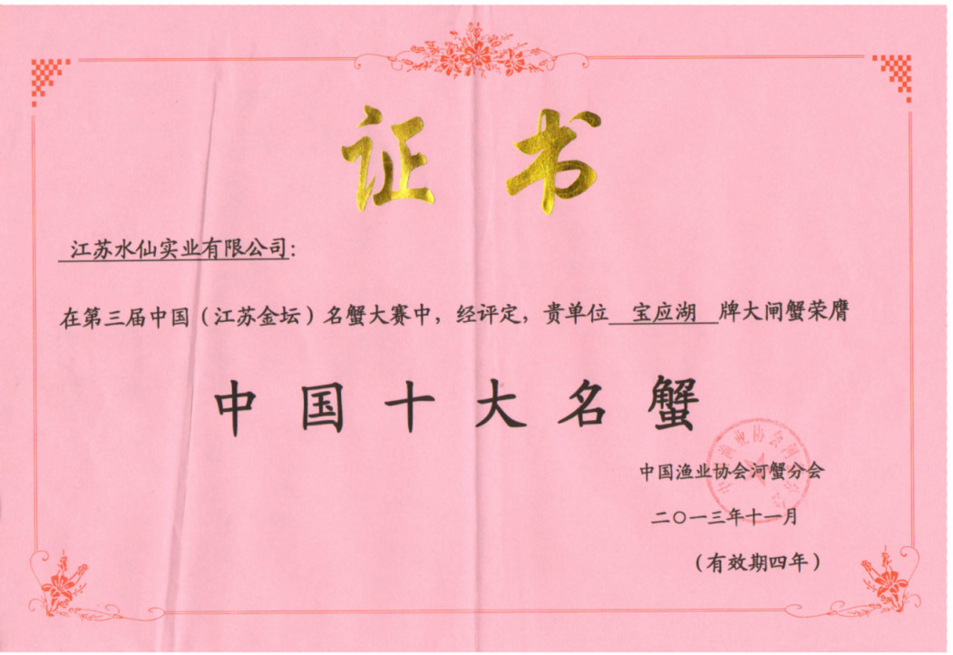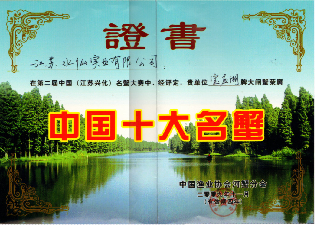 中國十大名蟹證書